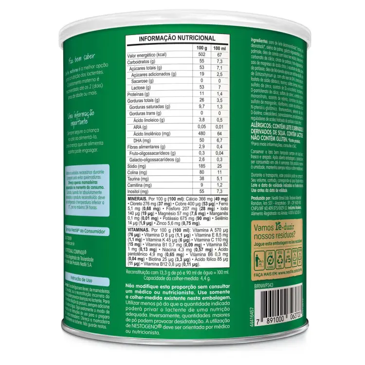 Enriquecido com prebióticos (fundamentais para a manutenção microbiota do intestino, do sistema imune e do organismo como um todo), Nestogeno 2 também é fonte de proteínas, ferro, vitaminas e minerais.