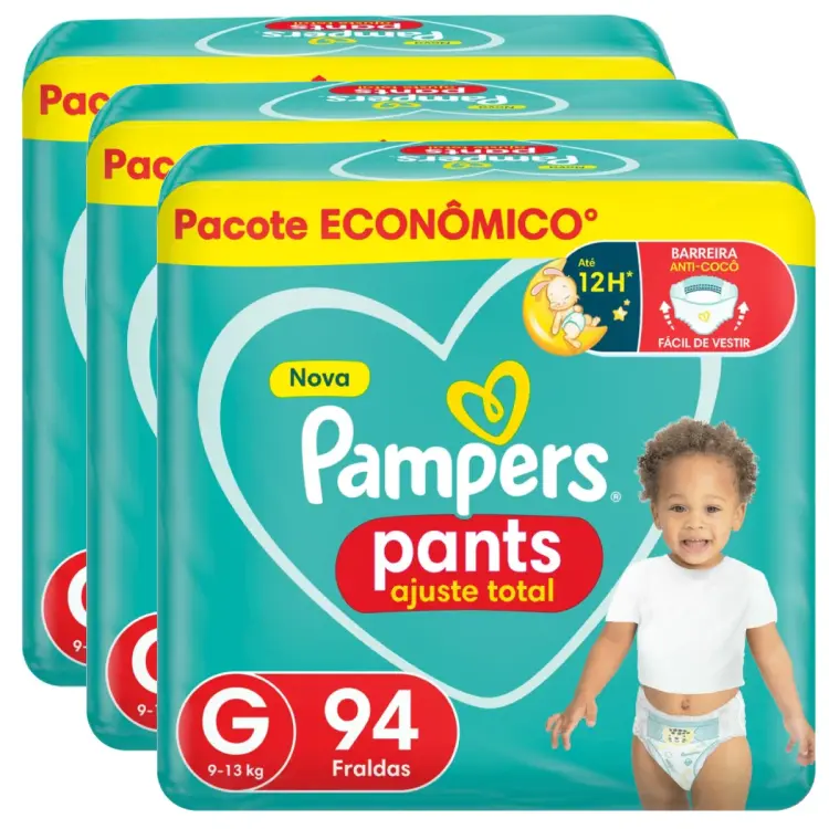 A fralda Pampers Pants Ajuste Total pode ser usada durante o dia ou à noite. Visando à praticidade, o modelo que se adapta ao corpo do bebê permite que a troca da fralda seja feita de forma fácil, mesmo quando ele está dormindo ou em movimento.