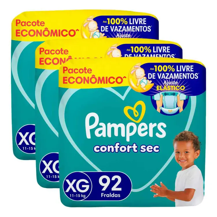 A Pampers Confort Sec é uma fralda descartável projetada para bebês, com canais de ar que permitem circulação livre e mantêm a pele arejada. Desenvolvida com tecnologia de absorção, possui 3 canais de gel absorventes extras e barreiras antivazamento.